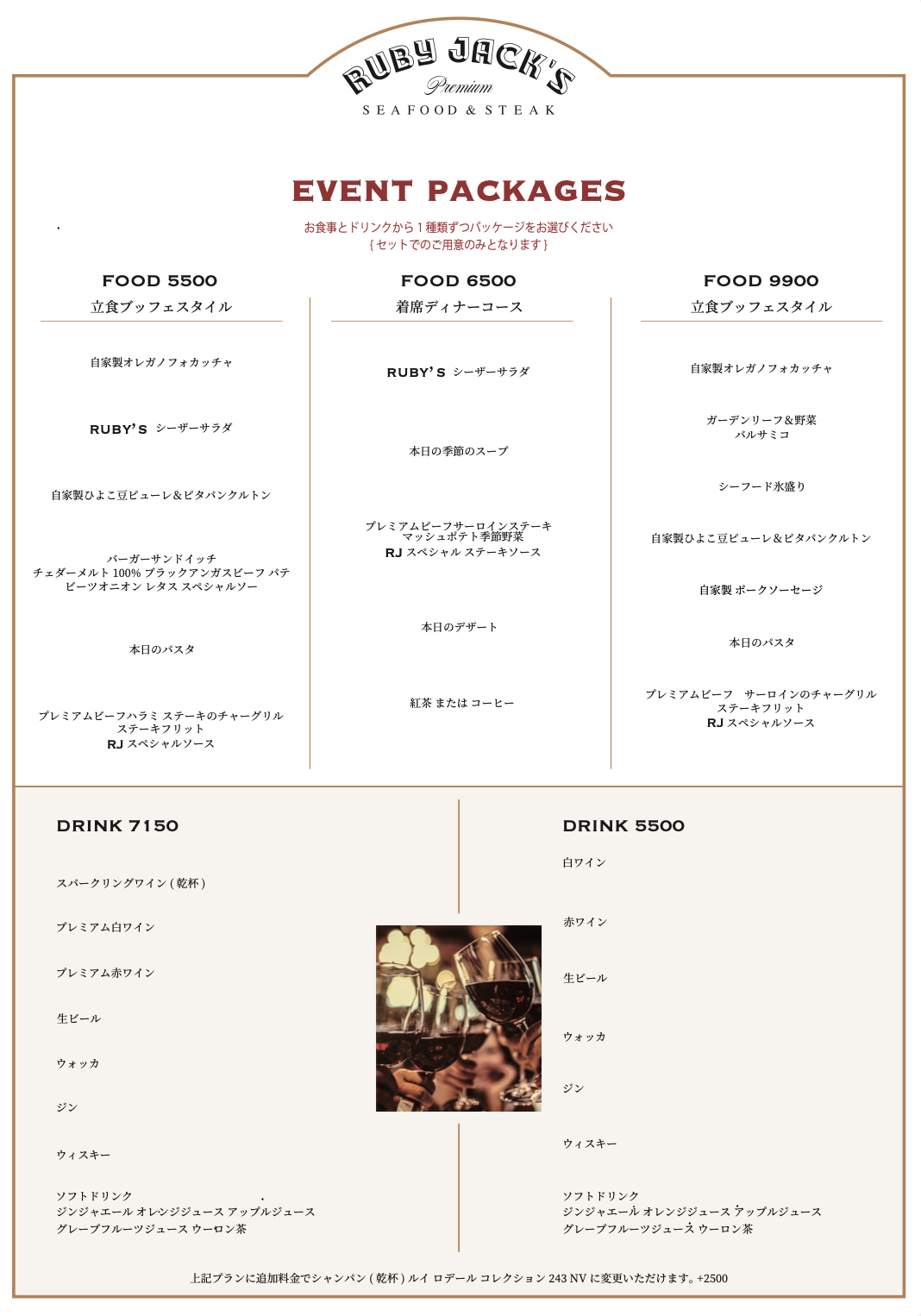 席数に限りがございますので、早めにご連絡いただき、イベントの詳細についてご相談ください。Ruby Jack’sでの素晴らしい思い出を一緒に作りましょう!